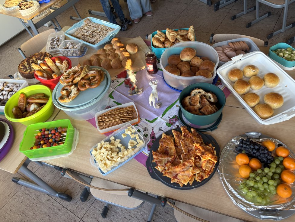 Alle Eltern hatten mit viel Liebe und Engagement verschiedene Speisen für das traditionelle Schulfrühstück vorbereitet. Von köstlichem Gebäck und belegten Brötchen bis hin zu gesundem Obst und Gemüse war für jeden Geschmack etwas dabei.